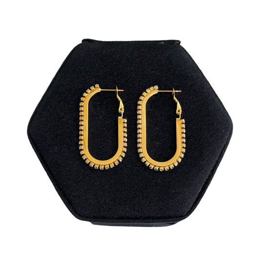 GIÒ ACCESSORIZE ORECCHINO OVALE LUX Acciaio Inossidabile e zirconi Bagno oro 14kt Nichel Free /Waterproof...